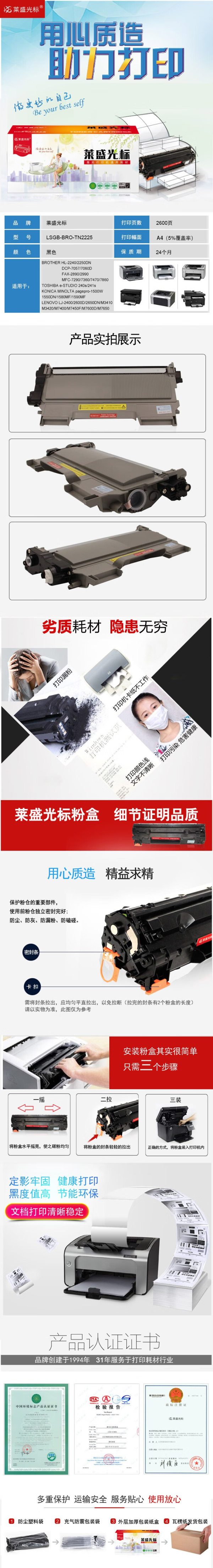 商品名称:莱盛光标 LSGB-BRO-TN2225 2600页 适用于 BROTHER HL-2240 2250DN DCP-7057 墨粉盒 黑色 (计价单位:支)