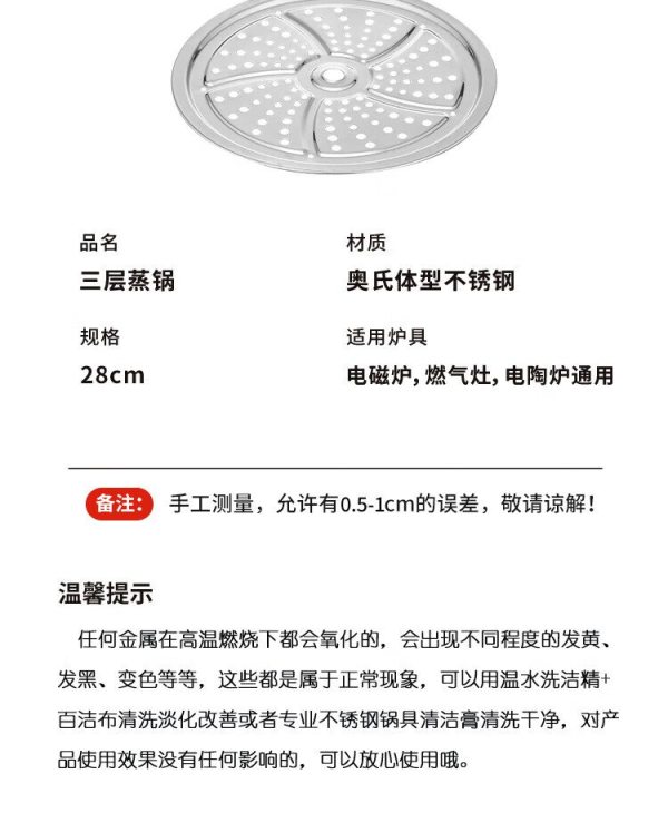 商品名称:栢士德BYSTON 维克三层蒸锅 BST-151 28CM