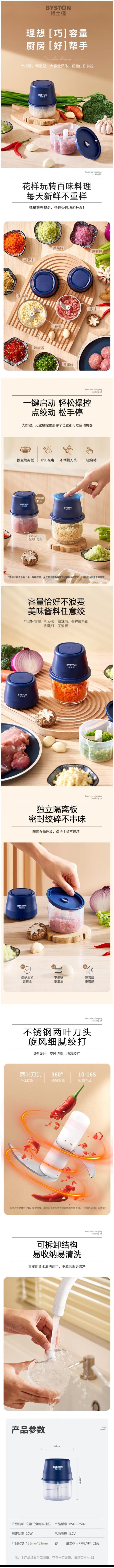 商品名称:栢士德BYSTON 充电式食物料理机 BSD-L2502 250ml