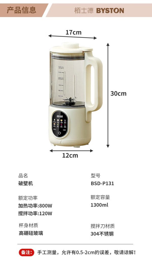 商品名称:栢士德BYSTON 破壁机 BSD-P131 1.3L