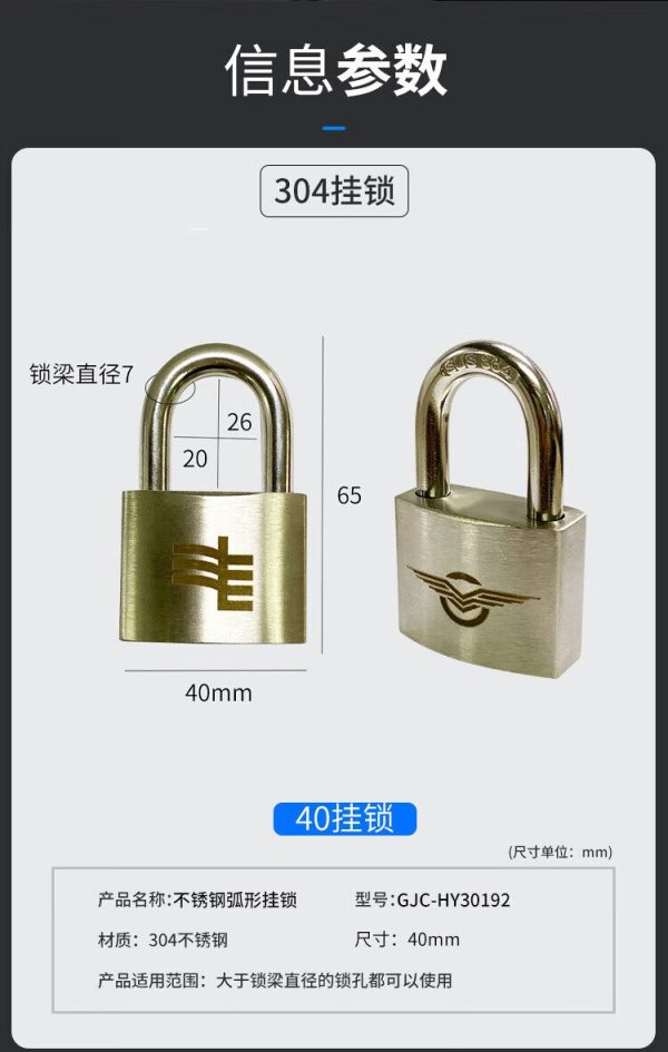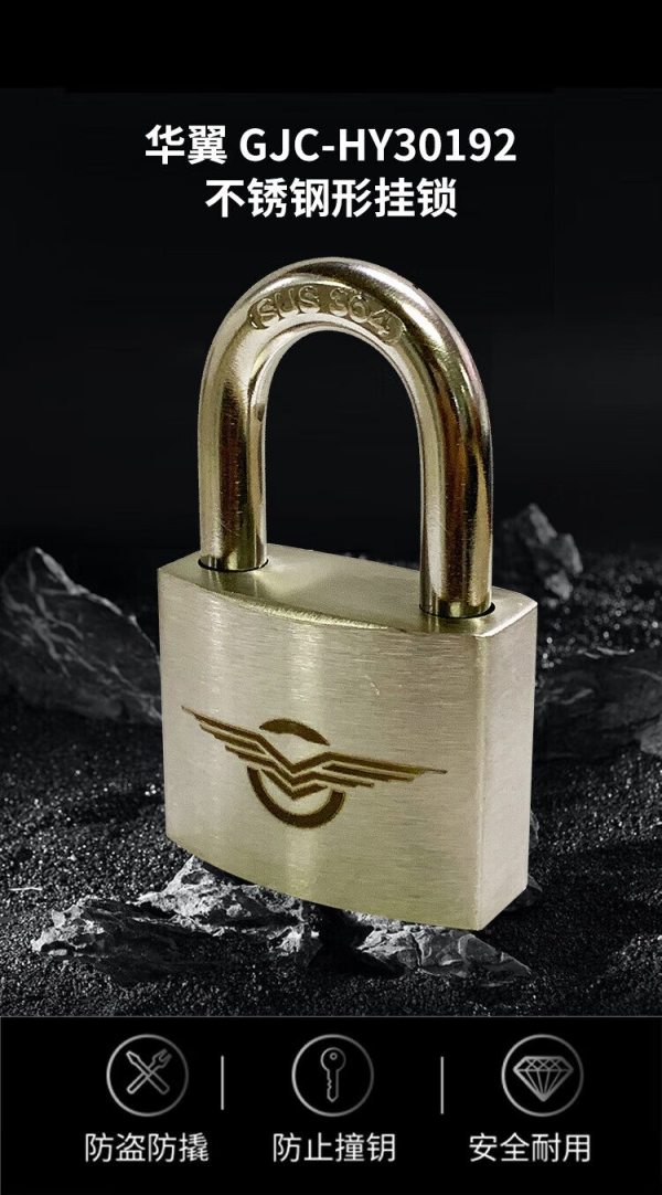 商品名称:华翼 GJC-HY30192 不锈钢弧形挂锁40mm 单位:个