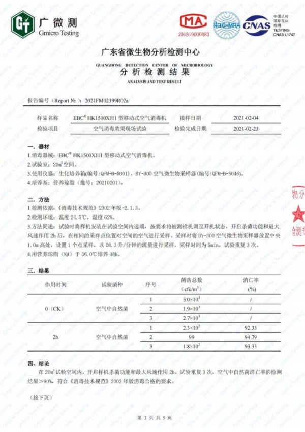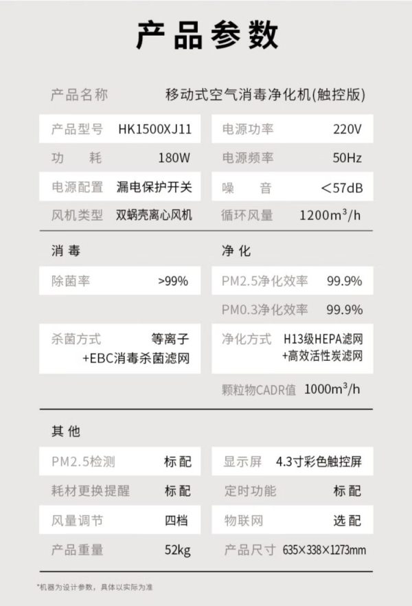 商品名称:EBC英宝纯 HK1500XJ11 移动式空气消毒净化机