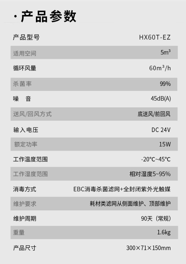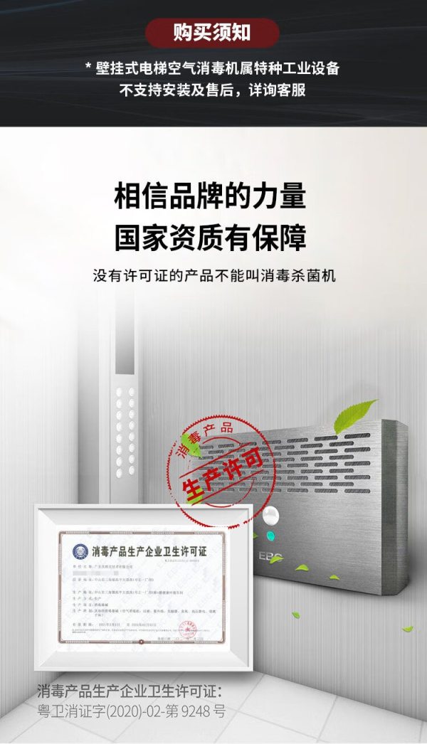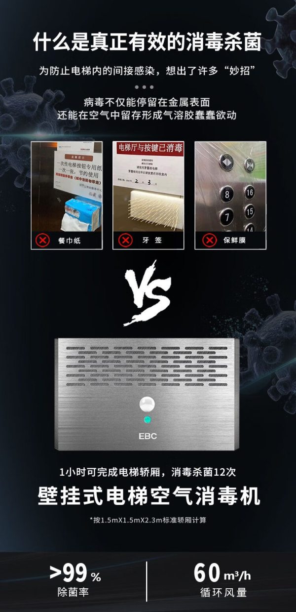商品名称:EBC英宝纯 HX60T-EZ 电梯空气消毒杀菌机