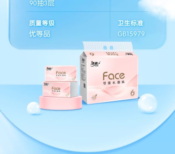 TR054501A洁柔牌纸面巾(FACE粉立体压花软抽)90抽3层(6包装)