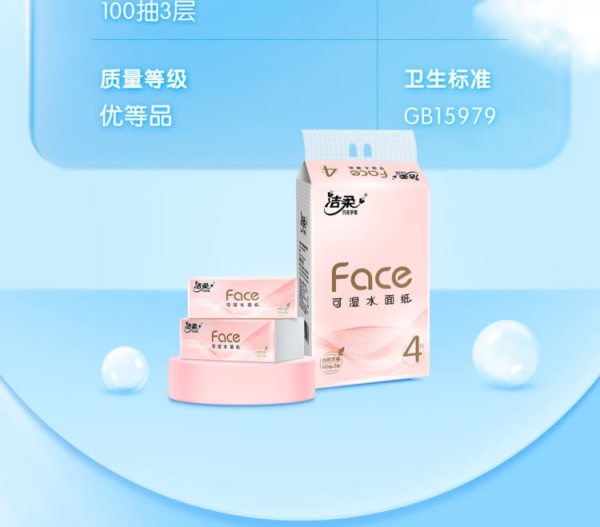 TR056501A洁柔牌纸面巾(粉色软抽)100抽3层(4包装)