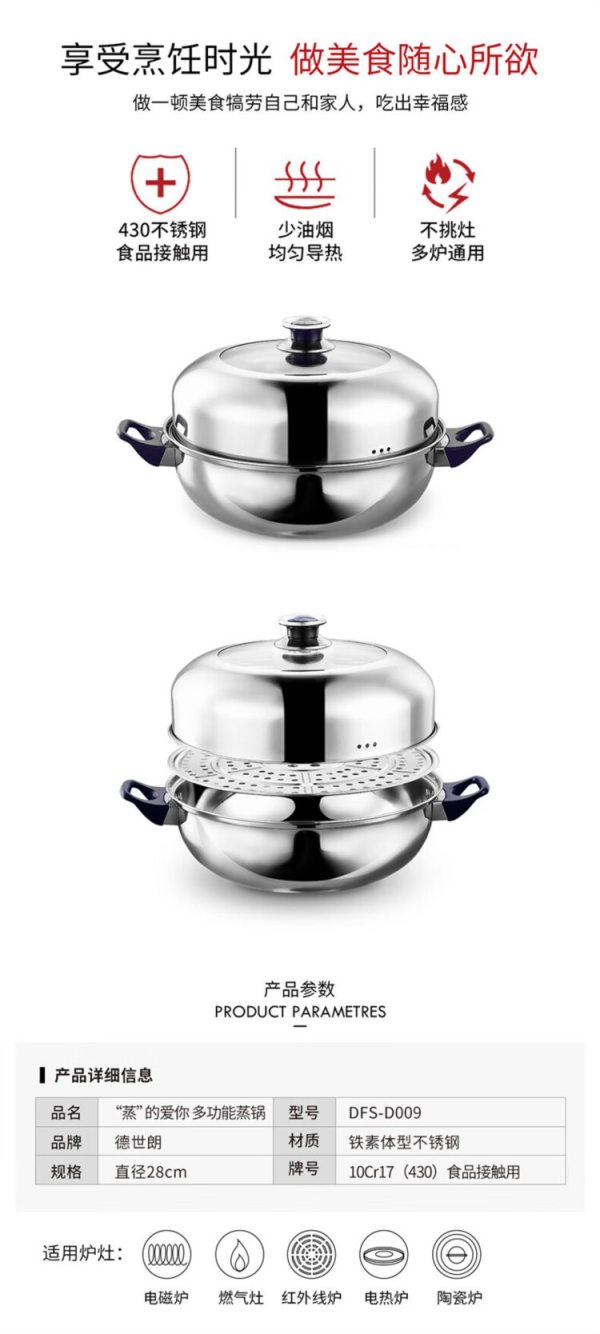 德世朗 DFS-D011 22cm 不锈钢 蒸锅 (计价单位:个)