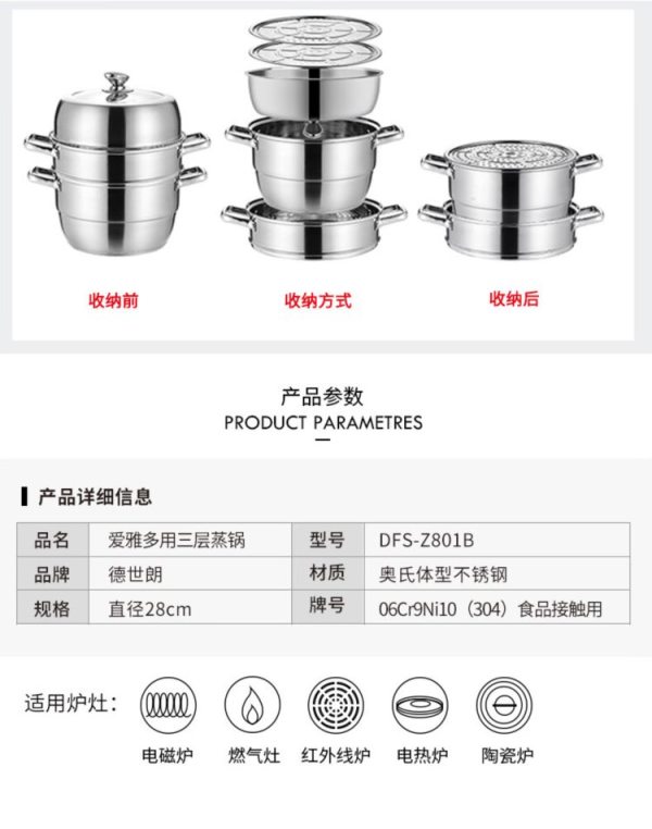 商品名称:德世朗 DFS-D011 22cm 不锈钢 蒸锅 (计价单位:个)