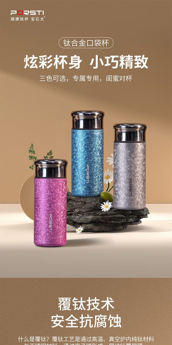 PORSTI 钛合金 GTBST-2503保温杯口袋杯220ml 湖波蓝 单位:个