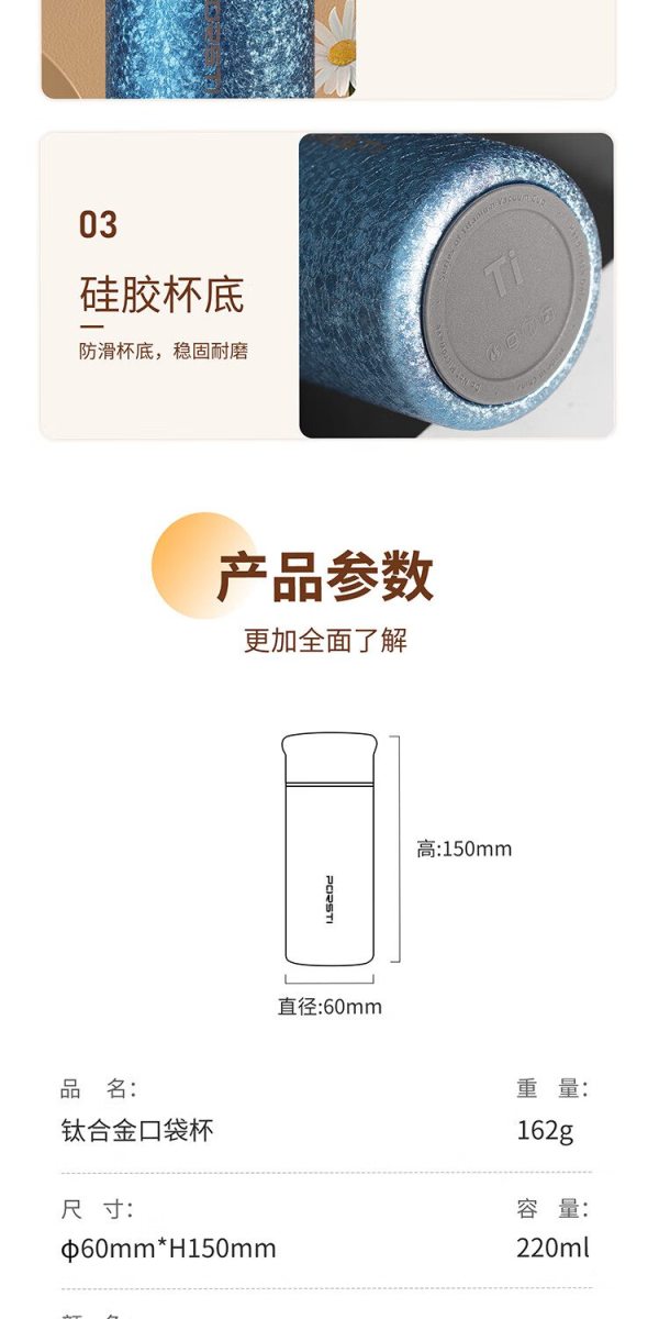 商品名称:PORSTI 钛合金 GTBST-2503保温杯口袋杯220ml 湖波蓝 单位:个