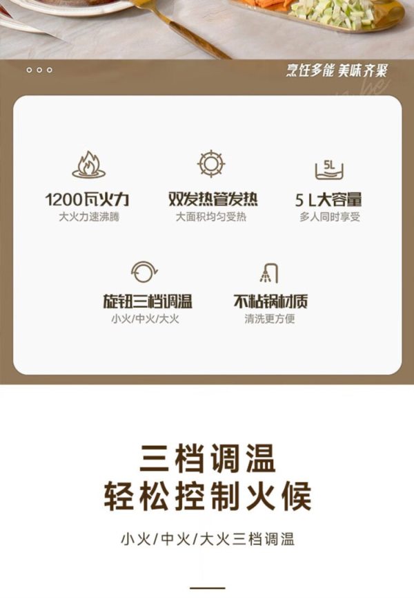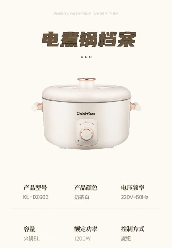 商品名称:Only&Home KL-DZG03 可煮、可焖一锅多用 多功能电煮锅(电热锅)奶茶白 (单位:台)