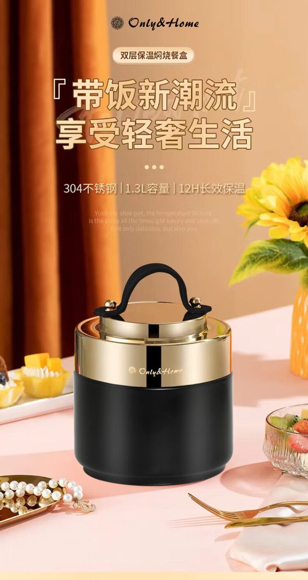 Only&Home OH-BWH01 食品级优质304不锈钢 双层保温焖烧餐盒 黑色 (单位:个)