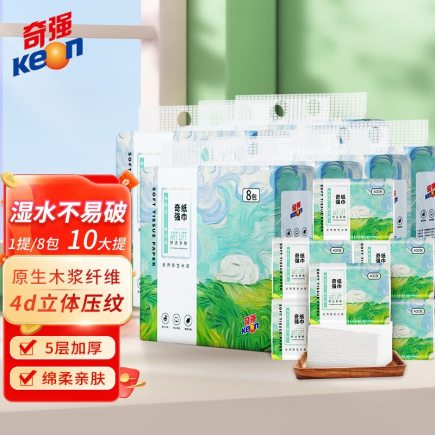 奇强 QQCZD224 加厚加大家庭实惠装原木纤维纸巾 146mmx175mm*400张*8包10提抽取式面巾纸(单位:组)