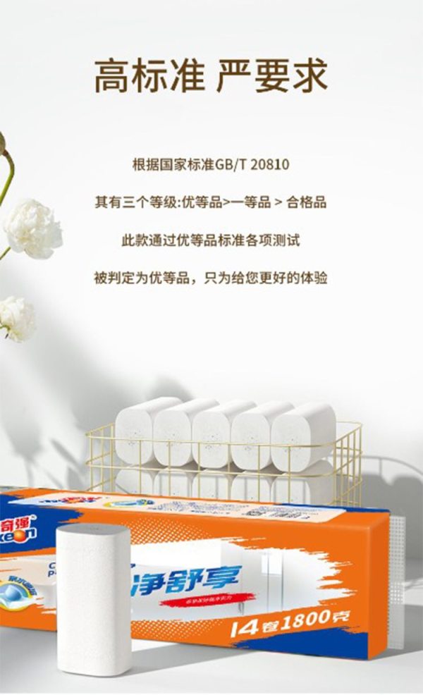 商品名称:奇强 QQJZ0101原木浆无芯卫生纸柔韧加厚 1800克*14卷/提 卫生纸(单位:提)