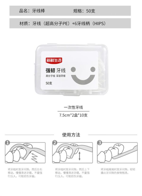 商品名称:新鲜生活 SH-7428-5 单包规格:50支牙线(方形)*5盒(单位:组)