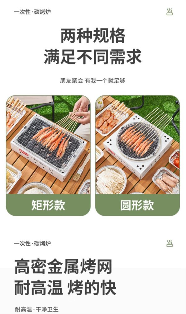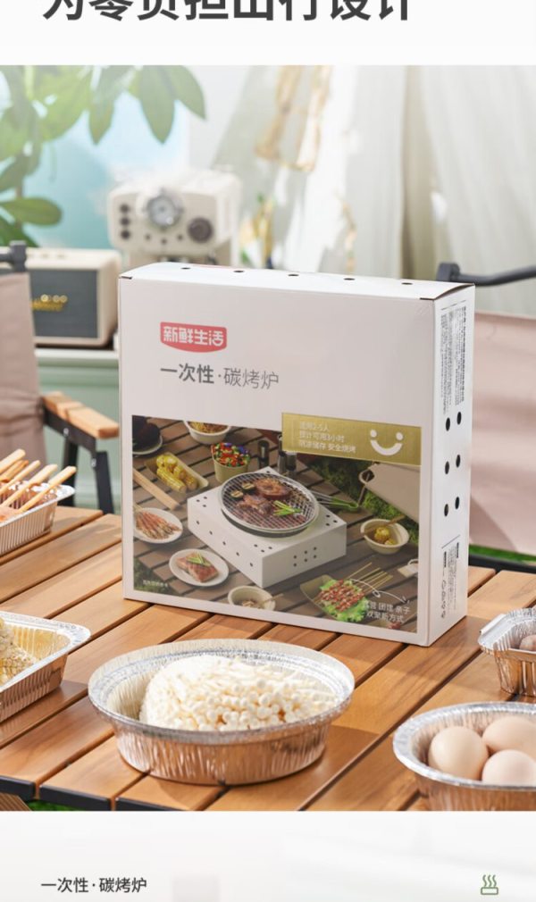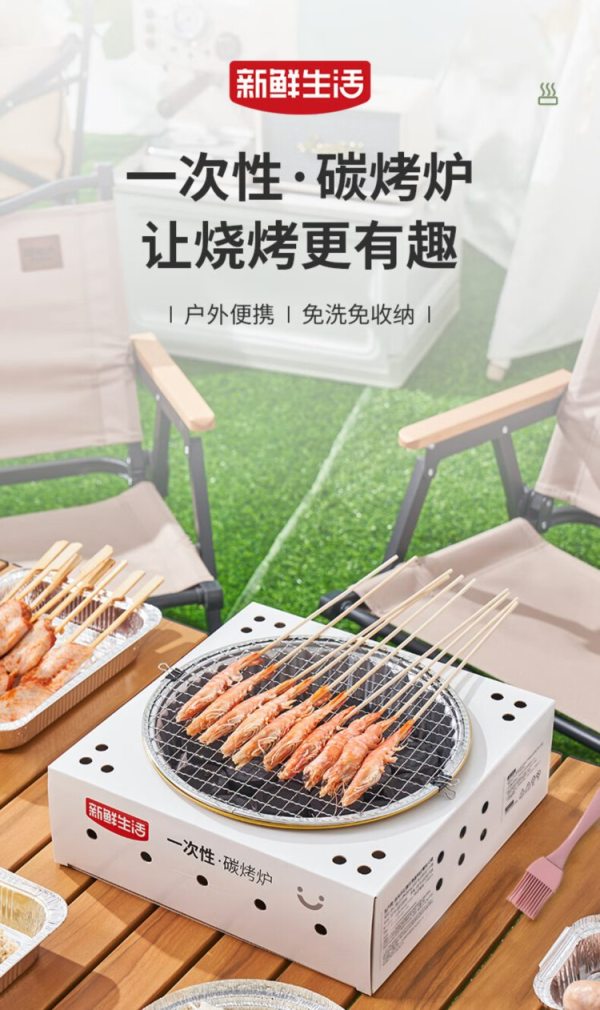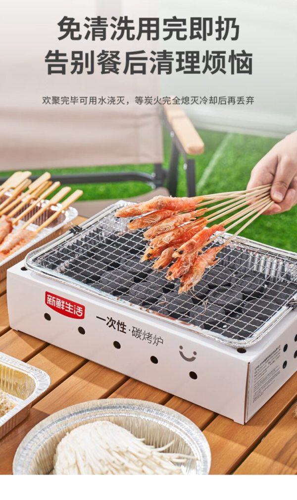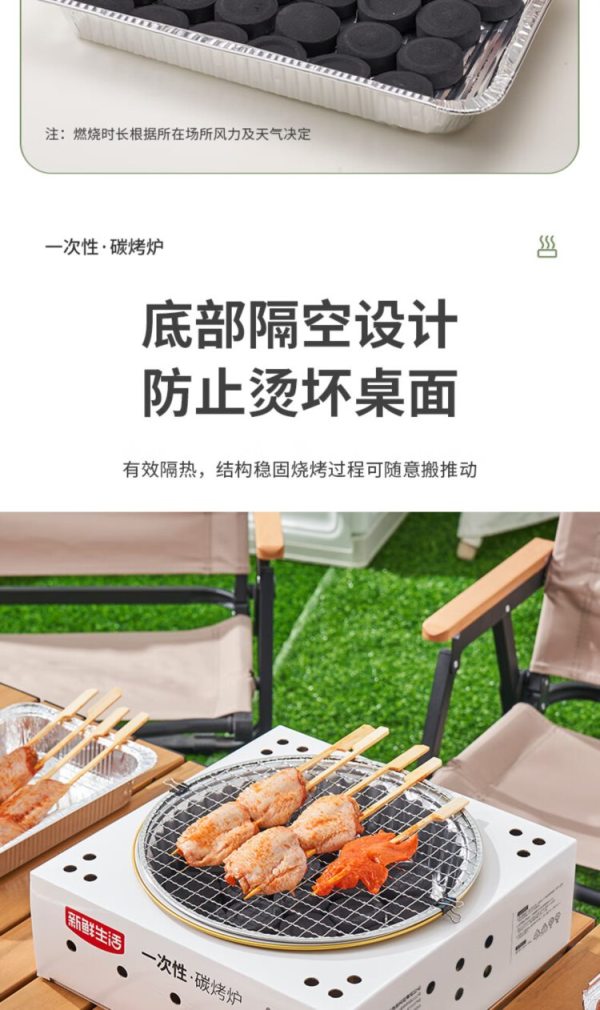 新鲜生活 SH-7617 户外庭院聚会含木炭便携式家用一次性碳烤炉(圆形)(单位:套)