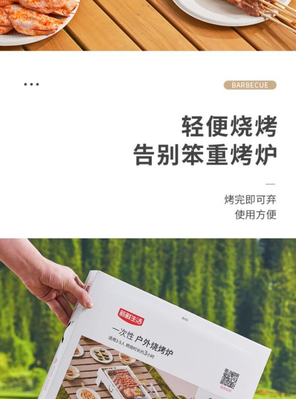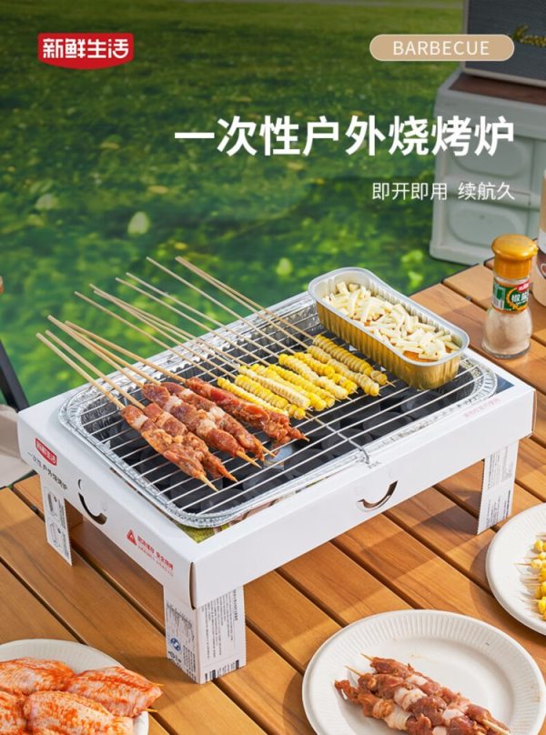 新鲜生活 SH-7618 户外庭院聚会含木炭便携式家用一次性碳烤炉(方形)(单位:套)