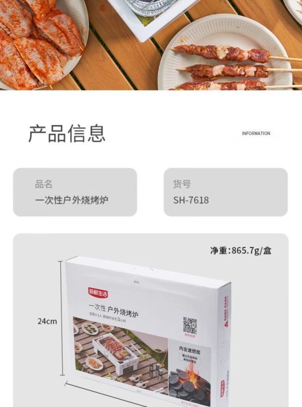 商品名称:新鲜生活 SH-7618 户外庭院聚会含木炭便携式家用一次性碳烤炉(方形)(单位:套)