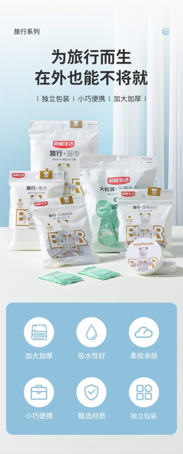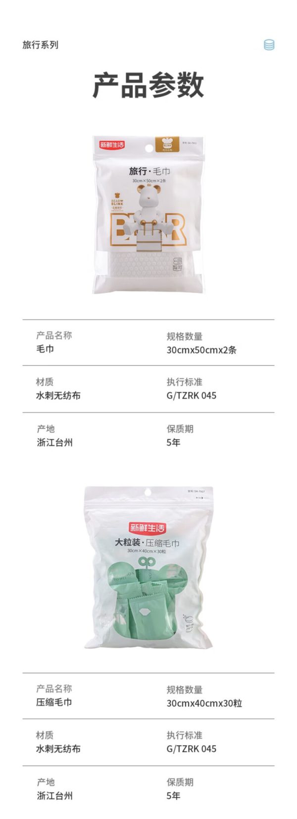 商品名称:新鲜生活 SH-7917一次性毛巾洗脸巾加厚旅行出差酒店用品 30cm*40cm*30粒 大粒装 压缩毛巾 (单位:包)