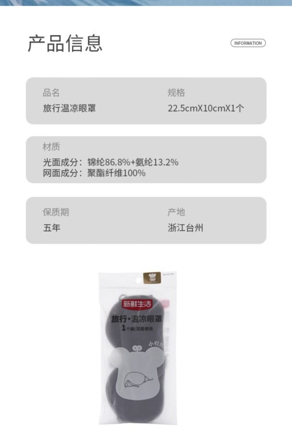 商品名称:新鲜生活 SH-7959 旅行 22.5cm*10cm*1个 温凉眼罩(单位:个)