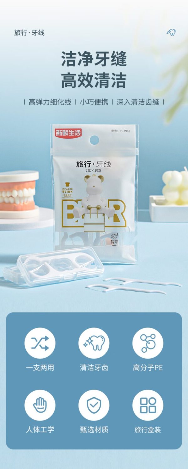 新鲜生活 SH-7962-5 旅行单包规格:7.5cm*2盒*10支 牙线*5包(单位:组)