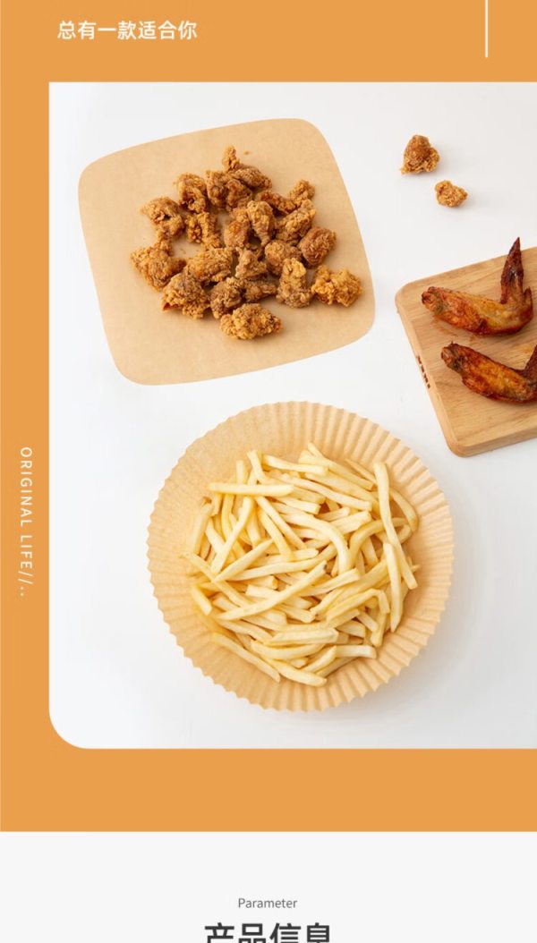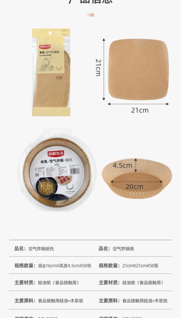 商品名称:新鲜生活 SH-8018 空气炸锅专用纸盘家用耐高温食物烤箱烘焙硅油纸 底φ16cm*高度4.5cm*100张 本色 空气炸锅 纸托(单位:盒)