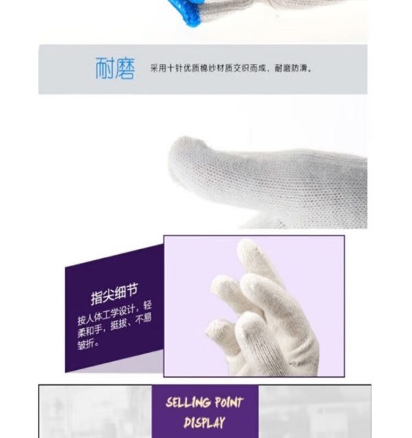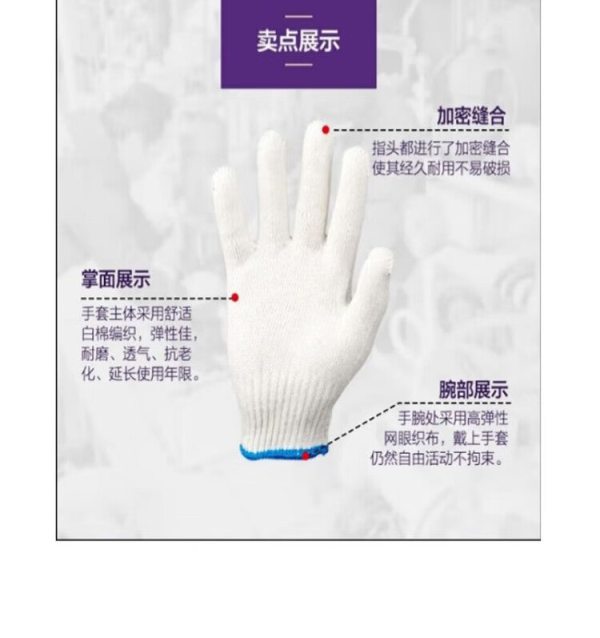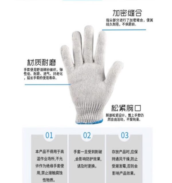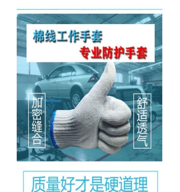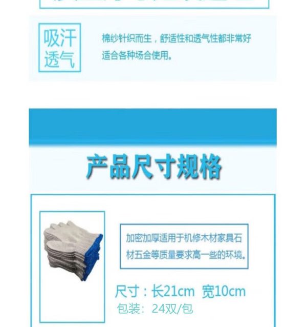 商品名称:安佑全 棉线劳保工作防护手套 普棉蓝边 KM-3016 长21*宽10cm(24双装) 白色 均码