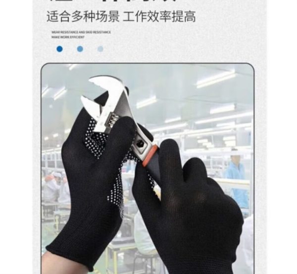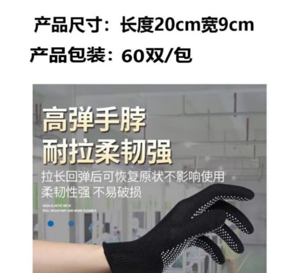 商品名称:安佑全 尼龙点珠防滑劳保手套 黑色尼龙点珠KM-3018 长度20cm宽9cm ( 60双/包)