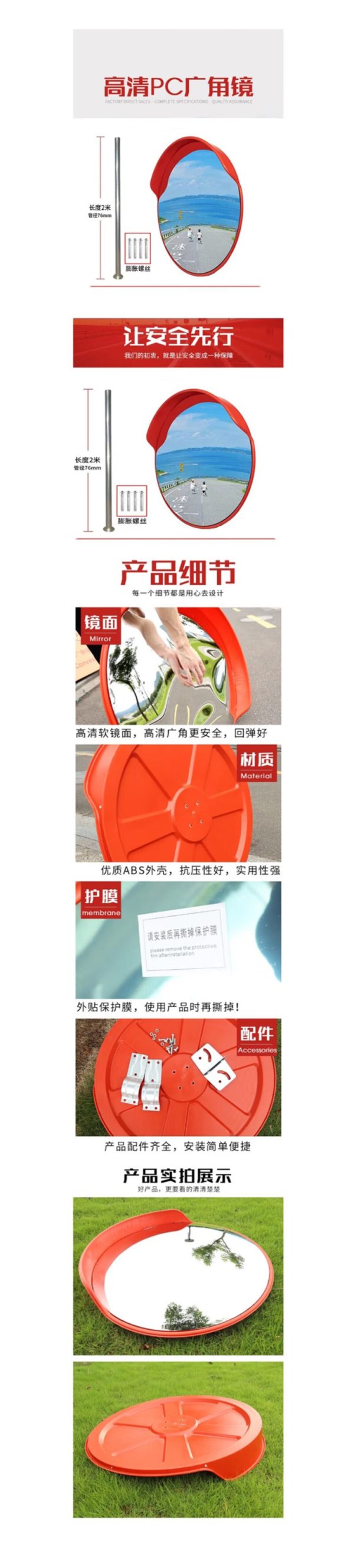 商品名称:宽迈 交通道路广角镜室外转弯镜子 直径80cm+2米立杆(1套装)