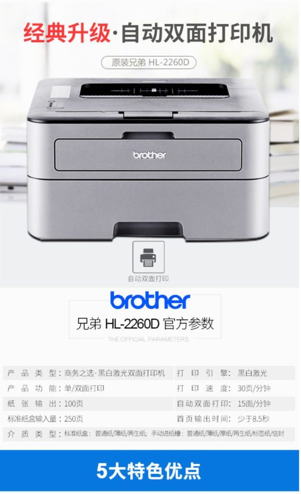 兄弟(brother) HL-2260D A4 双面 单打印 黑白激光打印机 (计价单位:台)