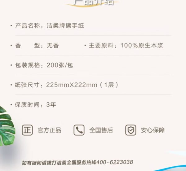 洁柔(C&S) TC005001A 单层200抽/包 20包/箱 擦手纸 20.00 包/箱 (计价单位:箱)