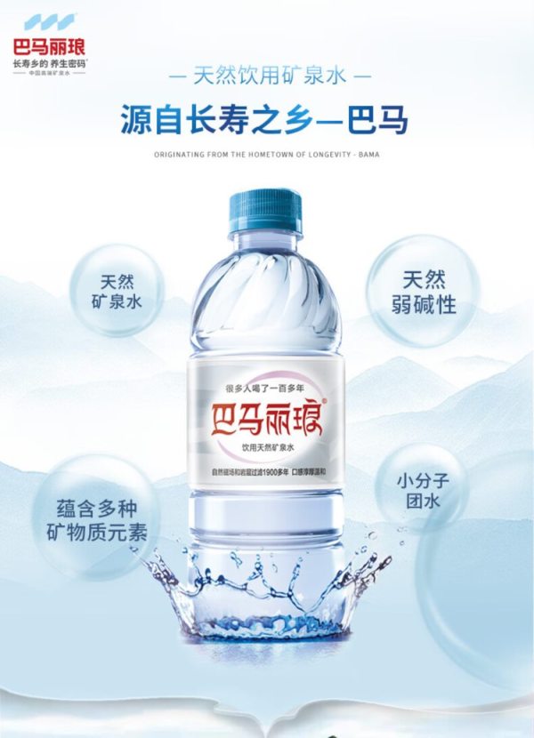 商品名称:巴马丽琅 源自长寿乡巴马 350ML*24 瓶装水 箱装 (计价单位:件)