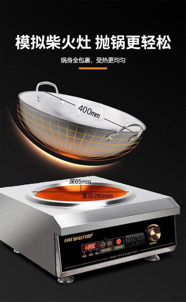 商品名称:共好商用电磁炉3500W凹面电磁灶大功率5kW平面组合炉 5kW凹面电磁炉GHKC-TA50