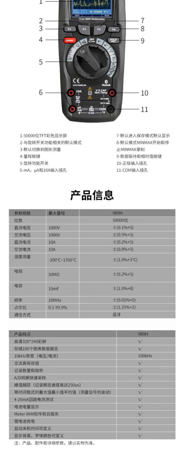 商品名称:华盛昌 NH989H 交直流1000V 工业级彩屏真有效值数字万用表 (计价单位: 台 )