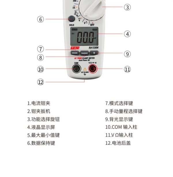 商品名称:华盛昌 NH-330H 600V/400A 钳形表 (计价单位: 台 )