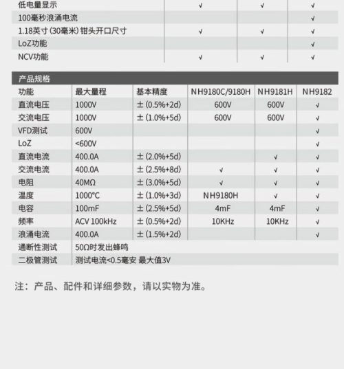商品名称:华盛昌 NH-9181H 600V/400A 钳形表 (计价单位: 台 )