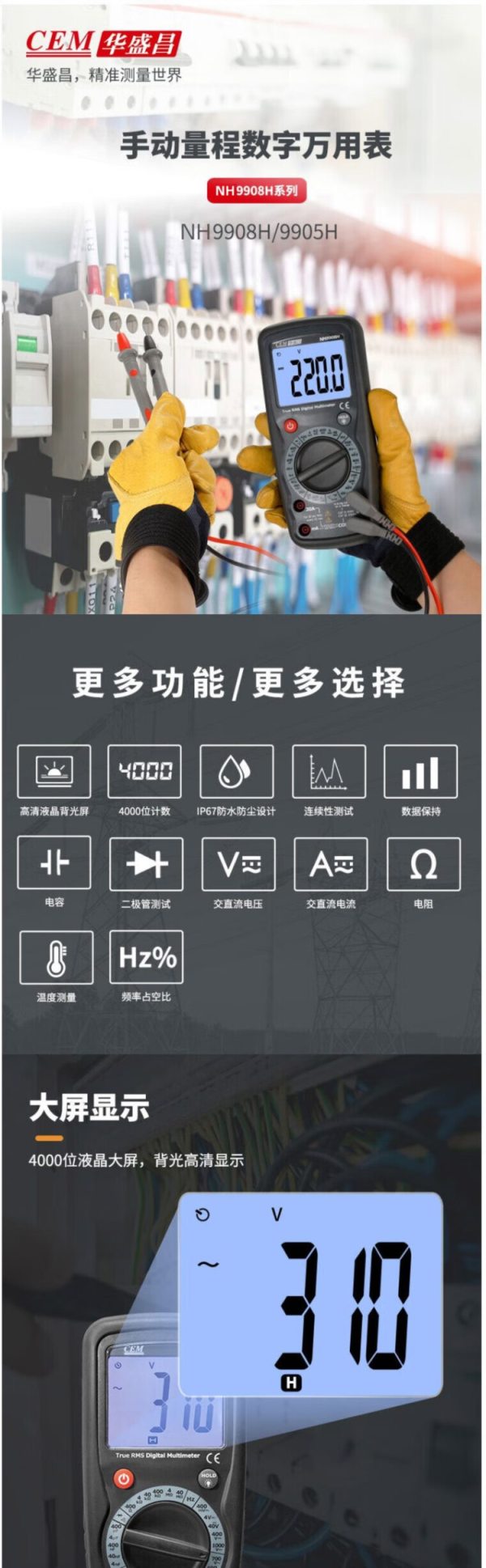 商品名称:华盛昌 NH-9905H 直流1000V/交流750V 高精度数字万用表 (计价单位: 台 )