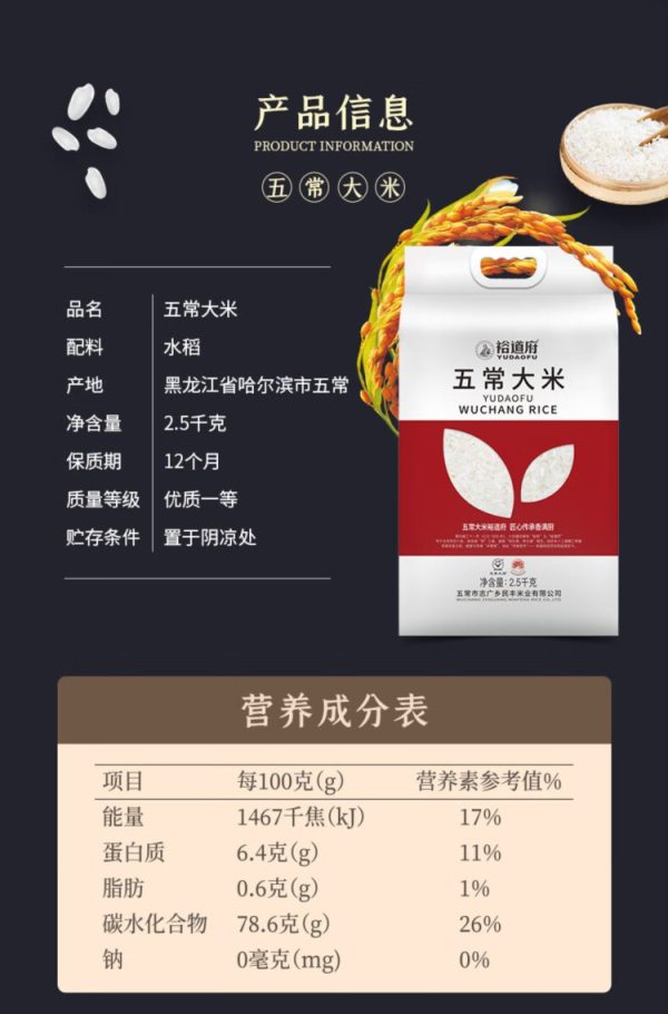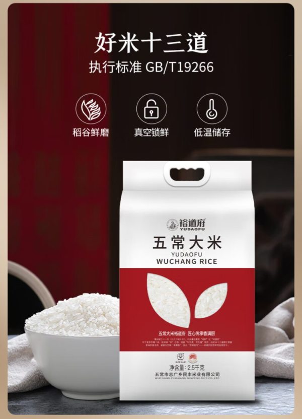 商品名称:裕道府 五常大米(双层袋真空装)2.5kg