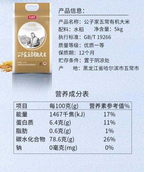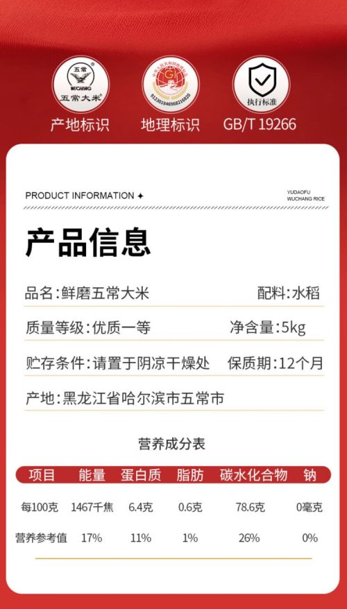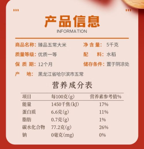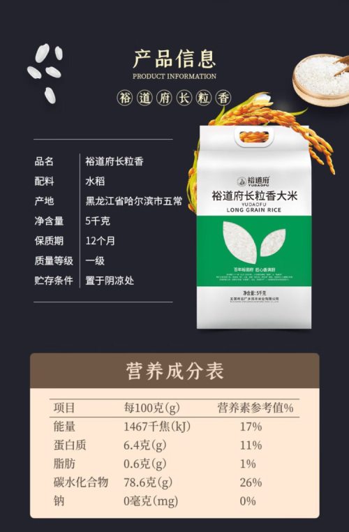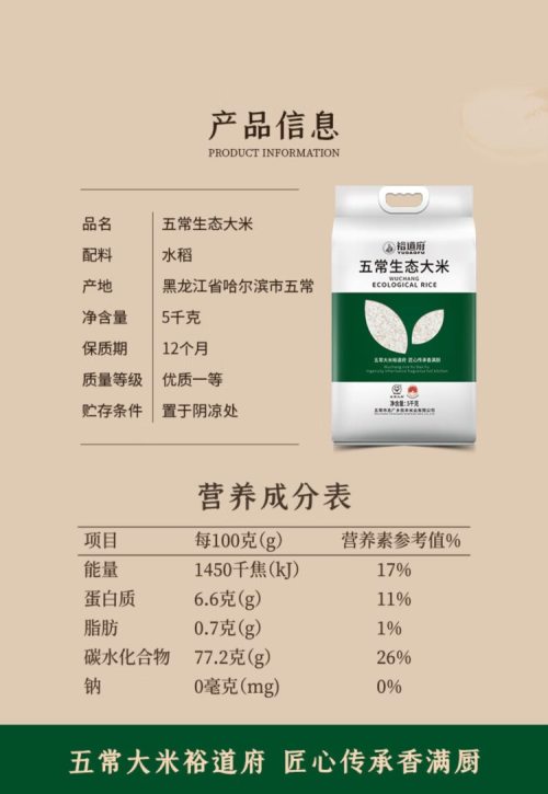 商品名称:裕道府 五常大米(双层袋真空装)5kg