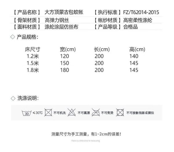 商品名称:自然巢 全封闭坐床式蚊帐铁艺烤漆支架坐床蚊帐 180*200 cm