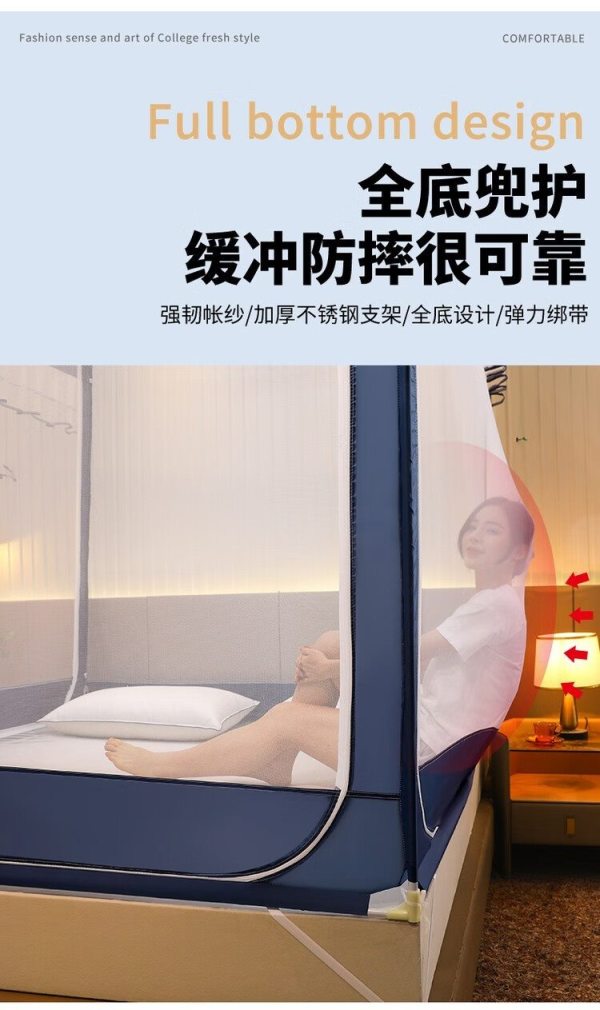 商品名称:自然巢 大方顶钢丝免安装蚊帐 150*200 cm