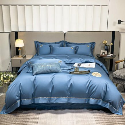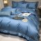 自然巢 100支刺绣宽边长绒棉四件套 1.8米/2米(被套220*240 cm)