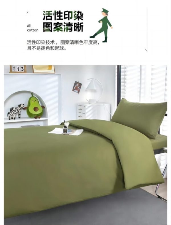商品名称:自然巢 军绿色套件被褥套装 五件套(三件套+被芯+枕芯)