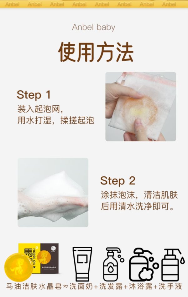 商品名称:安贝儿幼儿马油洁肤水晶皂100g*2块 (单位:盒)