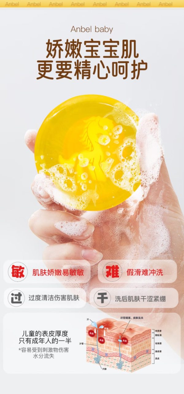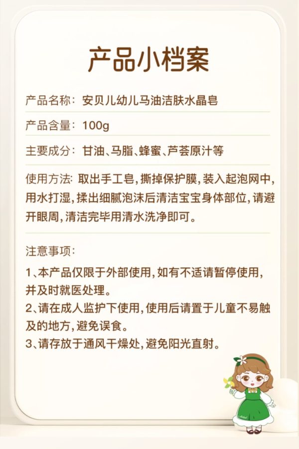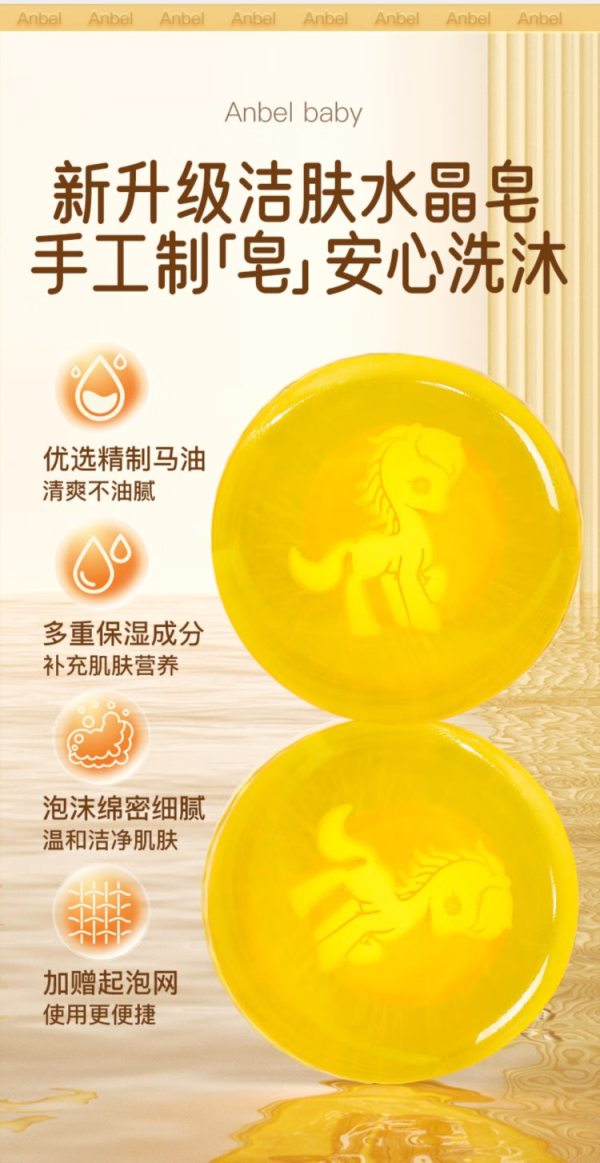 商品名称:安贝儿幼儿山茶油洁肤水晶皂100g*2块 (单位:盒)