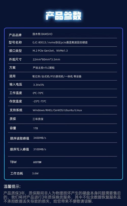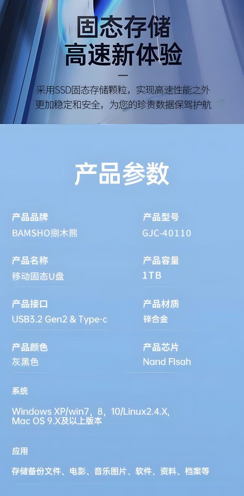 商品名称:捌木熊 GJC-40110 移动固态U盘 1TB 单位(个)