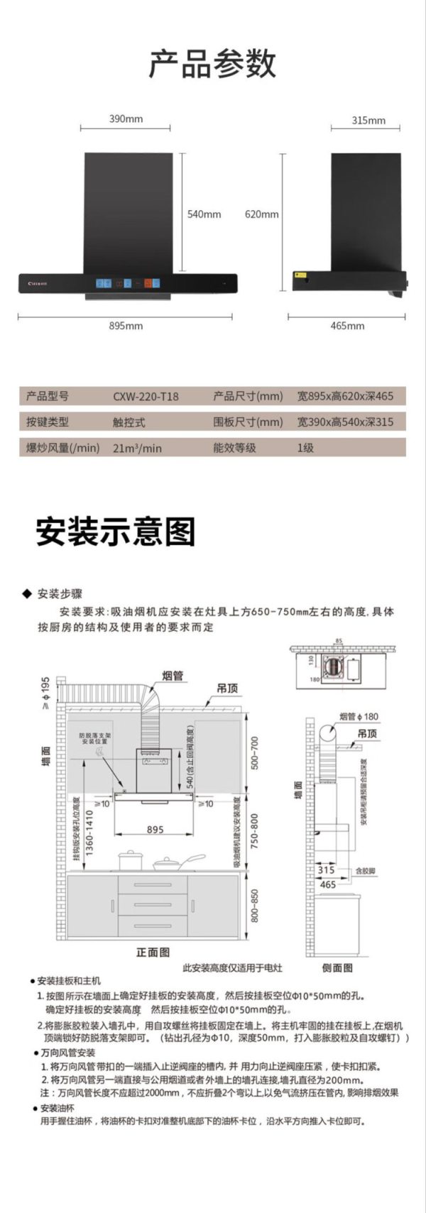 商品名称:村田(citin) CXW-220-T18 抽油烟机 (计价单位:台)