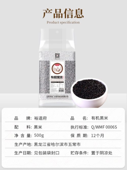 商品名称:裕道府 有机黑米 500g