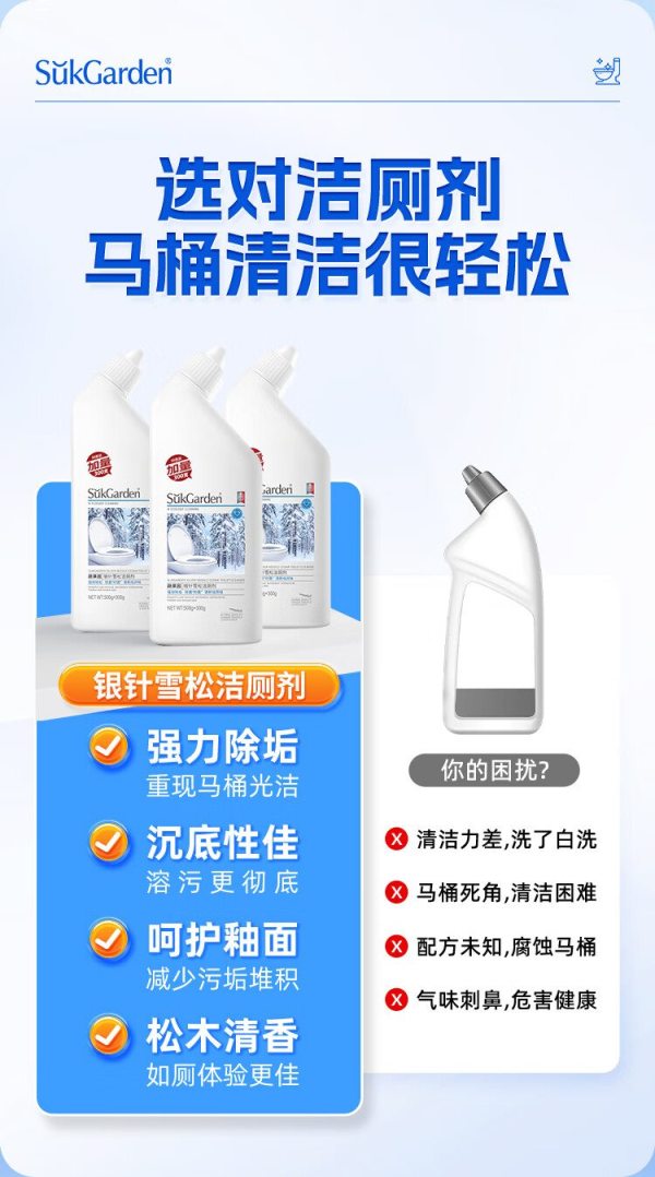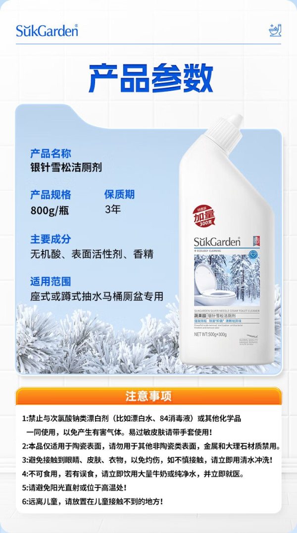 商品名称:SukGarden蔬果园银针雪松洁厕剂800g