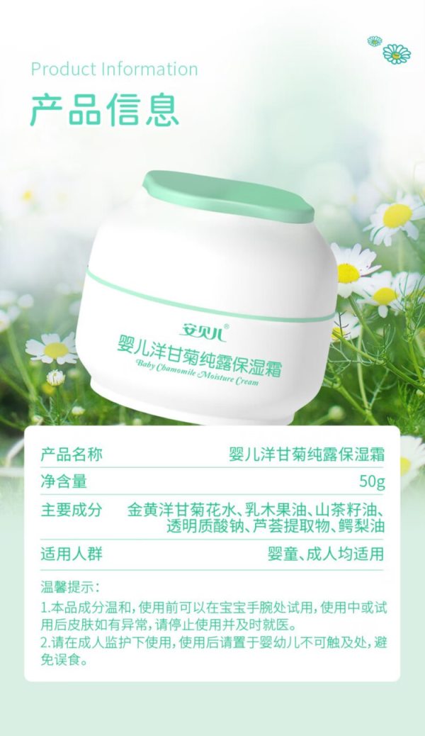 商品名称:安贝儿婴儿洋甘菊纯露保湿霜50g (单位:盒)