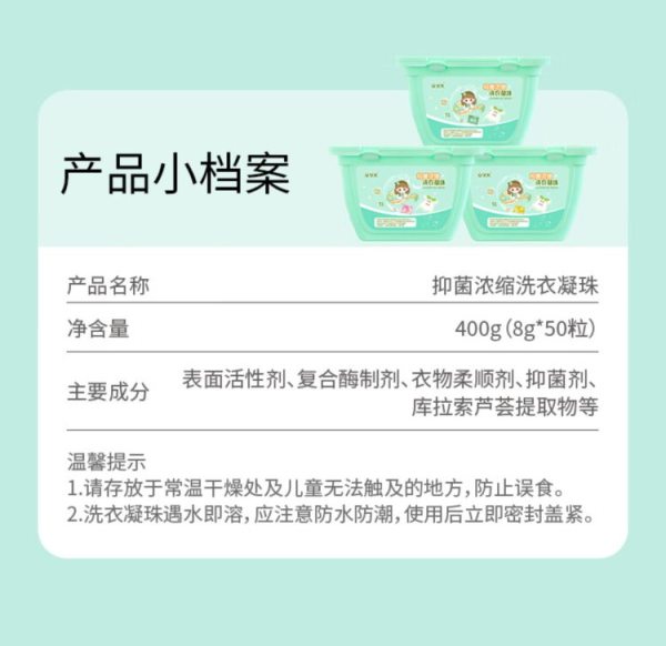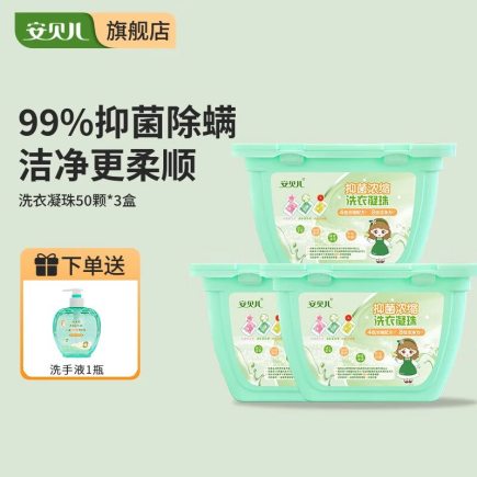 商品名称:安贝儿抑菌浓缩洗衣凝珠三盒装 50颗*3盒 (单位:组)